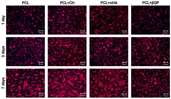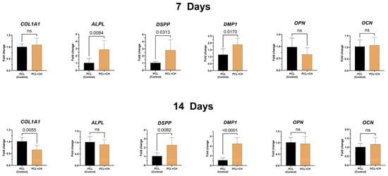 2.3.3. Odontogenic Differentiation of HDPC in Contact with PCL + CH Scaffolds