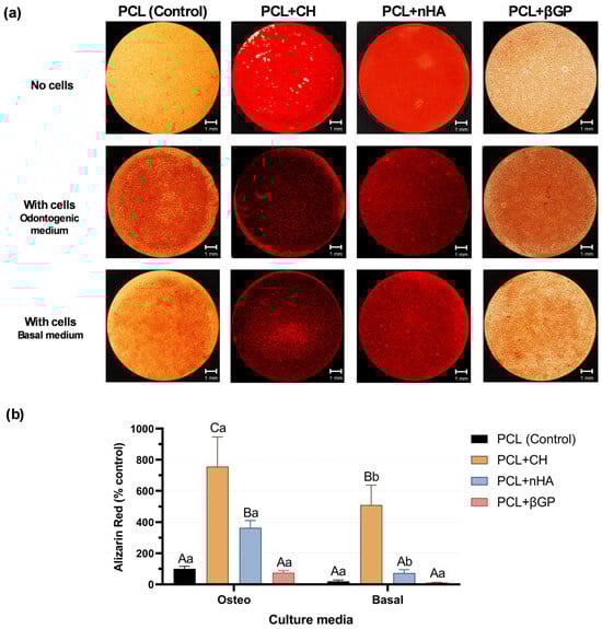 3.2. Physical–Chemical Characterization and Odontogenic Differentiation Potential of PCL + CH Scaffolds