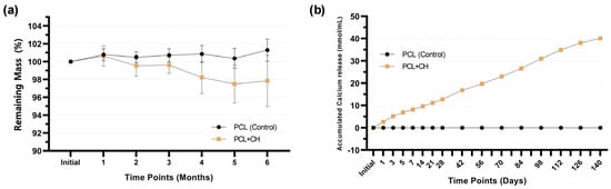 2.3.1. Degradation Profile of PCL + CH Scaffolds