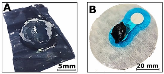 (A) Hybrid CNT hydrogel: SignaGel + 1% CNT (acetone) and (B) Hybrid CNT hydrogel: SignaGel + 1% CNT (acetone) on the electrode.