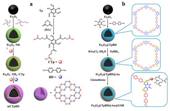 - Su, P.; Li, M.; Li, X.; Yuan, X.; Gong, Z.; Wu, L.; Song, J.; Yang, Y. Glutathione functionalized magnetic covalent organic frameworks with dual-hydrophilicity for highly efficient and selective enrichment of glycopeptides. J. Chromatogr. A 2022, 1667, 462869. [Google Scholar] [CrossRef]