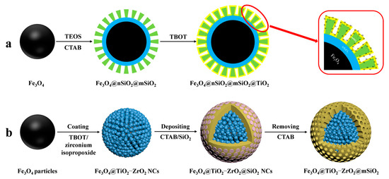 - Yue, Q.; Sun, J.; Kang, Y.; Deng, Y. Advances in the Interfacial Assembly of Mesoporous Silica on Magnetite Particles. Angew. Chem. Int. Ed. 2020, 59, 15804–15817. [Google Scholar] [CrossRef]