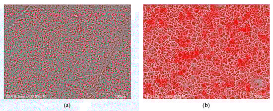 The porosity of the oxide layers obtained on the CpTi G4 surface was determined using a computer porosity testing method. SEM images illustrating the surface morphology of the anodic oxide layers were analyzed with the ImageJ program using the JPOR macro based on the thresholding technique [35]. The JPOR plug-in was used as a macro toolkit designed to work with ImageJ to measure porosity from the acquired microscopic images.