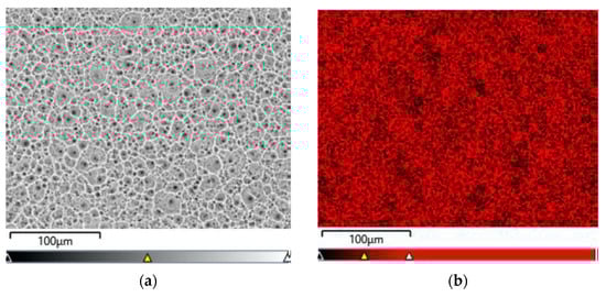 Figure 6a–d show exemplary maps of the surface distribution of elements identified in the examined micro-area on the CpTi G4 surface after electrochemical oxidation at 20 V for 48 h, obtained using the EDS method.