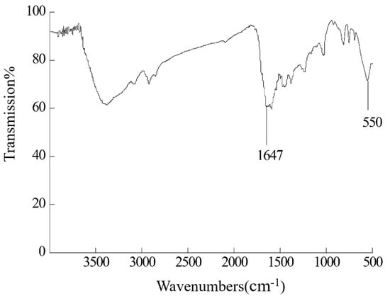 The bond formation of FE-1 COF was studied from the FT-IR spectrum data. As shown in Figure 5, a -C=N peak appears at 1647 cm−1. Furthermore, 550 cm−1 is the characteristic absorption peak of ferrocene. The IR spectrum showed that FE-1 COF was successfully prepared.
