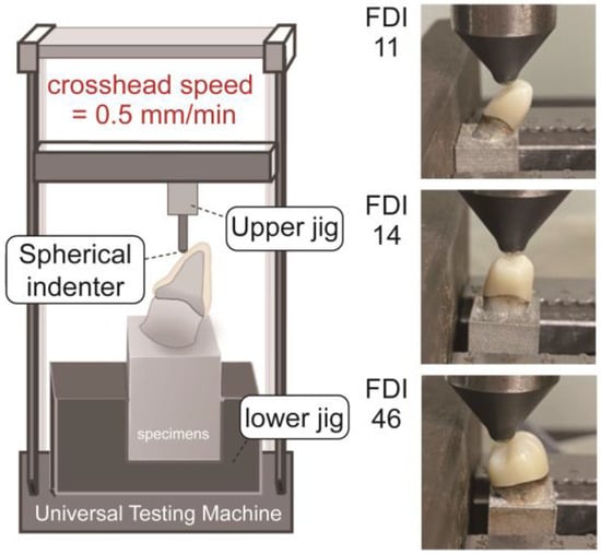 - Nakamura, K.; Harada, A.; Inagaki, R.; Kanno, T.; Niwano, Y.; Milleding, P.; Örtengren, U. Fracture resistance of monolithic zirconia molar crowns with reduced thickness. Acta Odontol. Scand. 2015, 73, 602–608. [Google Scholar] [CrossRef] [PubMed]