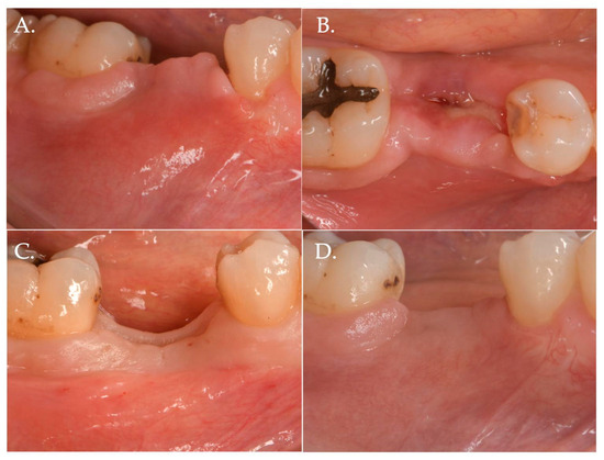 - Giannelli, M.; Pinzani, M.; Lorenzini, L.; Fossi, T.; Bani, D. Soft tissue augmentation around dental implants by a new laser-aided pouch roll technique.Volumetric and clinical evaluation after 1-year. J. Oral Implantol. 2024, 50, 153–159. [Google Scholar] [CrossRef] [PubMed]