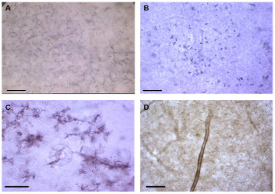 Immunohistochemical staining of (A) CD31 on CMP (10× magnifications), (B,C) CD31-positive ECs, and (D) VWF staining of a tubular structure in porous CMP (40× magnifications) (scale bar = 100 µm).