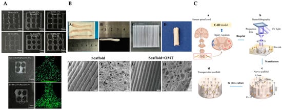Advances in 3D printing technology allow for the precise spatial arrangement of multiple cells and biomaterials, thereby enhancing the efficiency of cell delivery and integration onto scaffolds. There are two primary methods to deliver cells via 3D printed scaffolds: post-printing cell seeding and embedding cells within bioinks during the 3D bioprinting process [121,122,123,124]. The approach of seeding the cells after printing provides more flexible requirements for both the conditions and 3D printing process, though it is hindered by low cell adhesion rates on the scaffolds. To address this challenge, one approach involves encapsulating cells in hydrogels prior to combining them with 3D printed scaffolds. Alternatively, the bioprinting method enhances cell loading efficiency and allows for precise control over the spatial distribution of various cell types. However, this method demands stringent conditions and precise parameters during printing, as cells are sensitive to suboptimal environmental conditions. This necessitates detailed knowledge of the parameters of the bioinks and printing conditions beforehand [74,125,126,127,128].