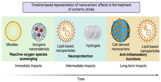 Timeline-based representation of nanocarrier effect in the treatment of ischemic stroke.