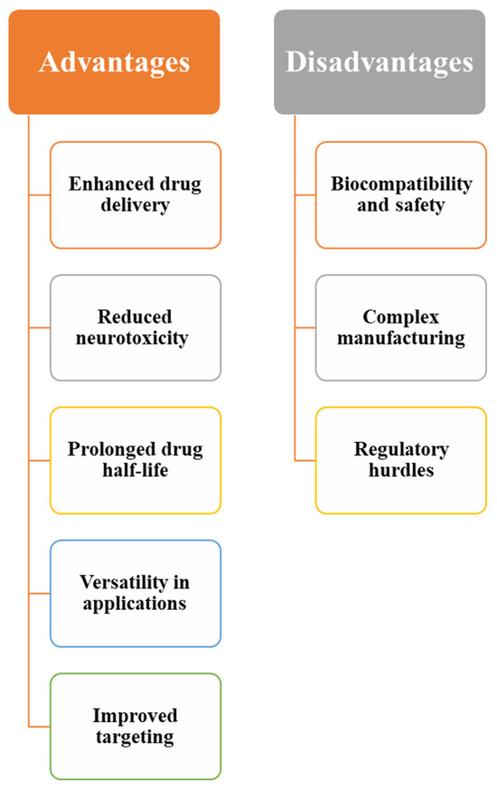 So, from the above, it is found that all the currently available therapeutic approaches to strokes have several limitations. Some of the common challenges with current stroke management approaches have delayed diagnosis, the risk of secondary brain injury, and the challenge of delivering therapeutic agents directly to the affected site within the brain. Symptomatic non-stenotic carotid plaques are an under-recognized stroke risk factor [18,19]. The lack of standardized definitions and imaging protocols complicates diagnosis and treatment, which requires further studies to establish effective management strategies [20]. Post-stroke rehabilitation is one of the major challenges, with persistent motor and cognitive deficits. Non-invasive neurostimulation techniques, like rTMS and tDCS, demonstrate promise in promoting recovery by modulating brain activity and increasing neuroplasticity [21]. The current stroke treatments have improved the rate of survival, but they often fall short of addressing long-term functional impairments. The complicated nature of stroke pathophysiology and patient diversity requires a comprehensive strategy incorporating conventional and innovative medicines. Continuous research and innovation are needed to address existing challenges and enhance outcomes for stroke patients. A developing strategy in stroke identification and treatment is the use of nanoparticles (NPs) and nanotechnology, which may be essential due to their small size, significant surface area to volume ratio (SVR), and ability to pass through the blood–brain barrier (BBB) [22,23].