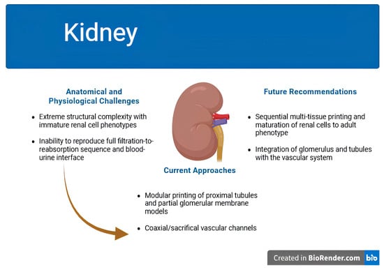 - Wragg, N.; Burke, L.; Wilson, S. A critical review of current progress in 3D kidney biomanufacturing: Advances, challenges, and recommendations. Ren. Replace. Ther. 2019, 5, 18. [Google Scholar] [CrossRef]