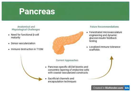 - Ribezzi, D.; Catala, P.; Pignatelli, C.; Citro, A.; Levato, R. Bioprinting and synthetic biology approaches to engineer functional endocrine pancreatic constructs. Trends Biotechnol. 2025, 43, 2133–2149. [Google Scholar] [CrossRef] [PubMed]
