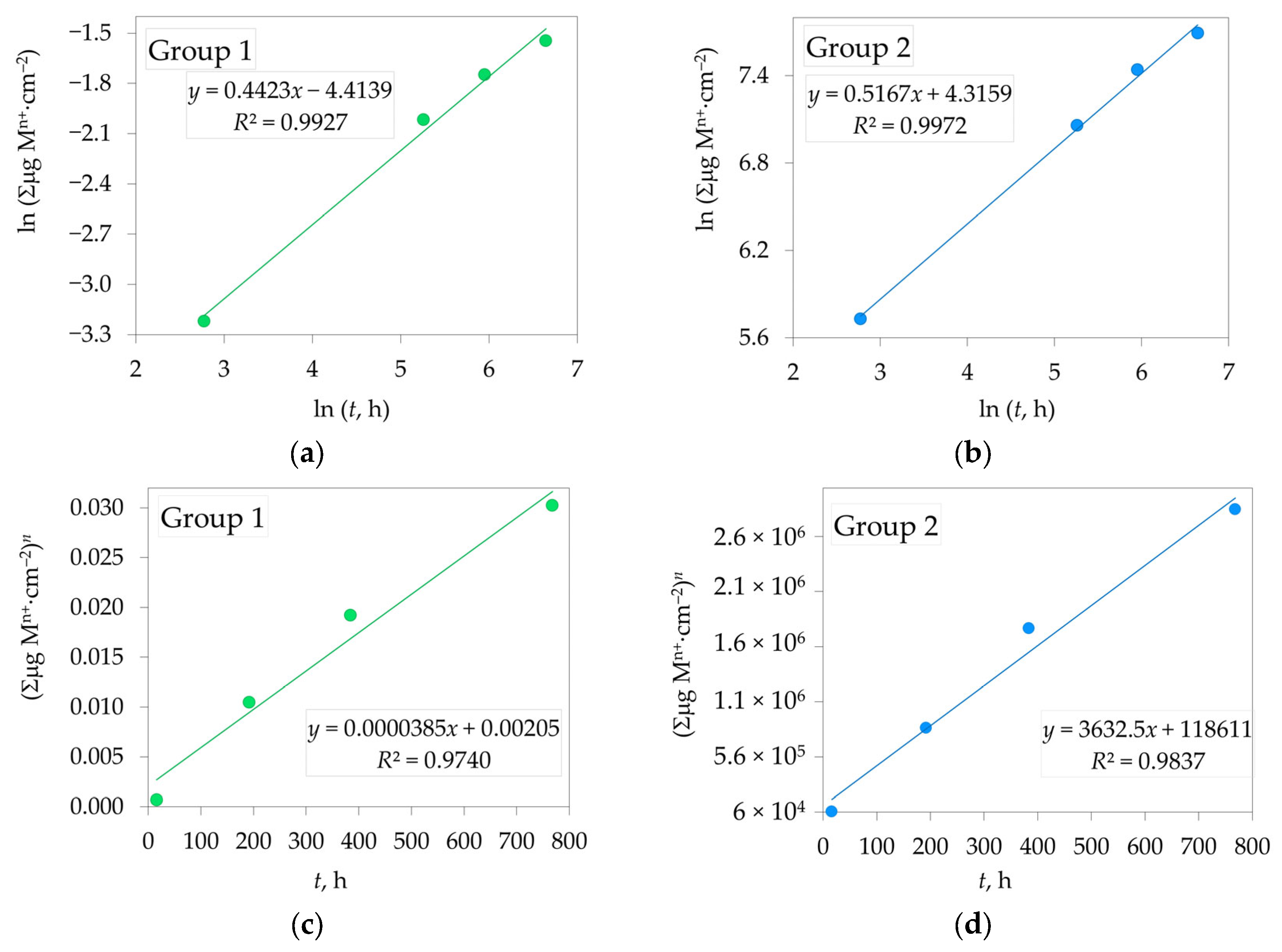 Group 1 | 2.261 ± 0.004 | 0.99 | 3.85 × 10−5 ± 4.45 × 10−6 | 0.97 |
