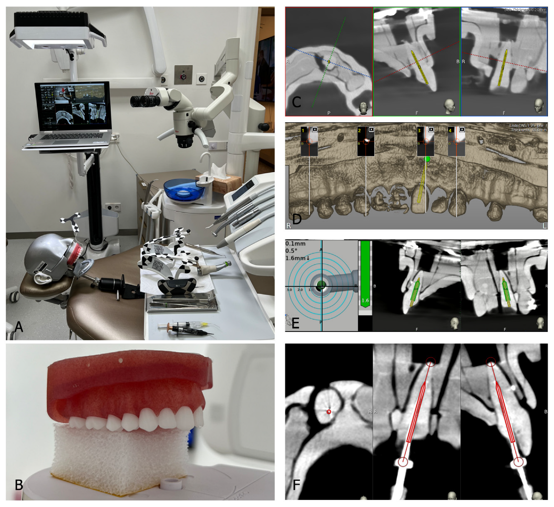 - Xue, P.; Luo, Q.; Huang, Y.; Xu, M.; Qiu, L.; Wang, J.; He, H.; Chen, F. Retreatment and aesthetic restoration of maxillary incisor with calcified root canal using a dynamic navigation system: A case report. BMC Oral. Health 2024, 24, 1358. [Google Scholar] [CrossRef]
