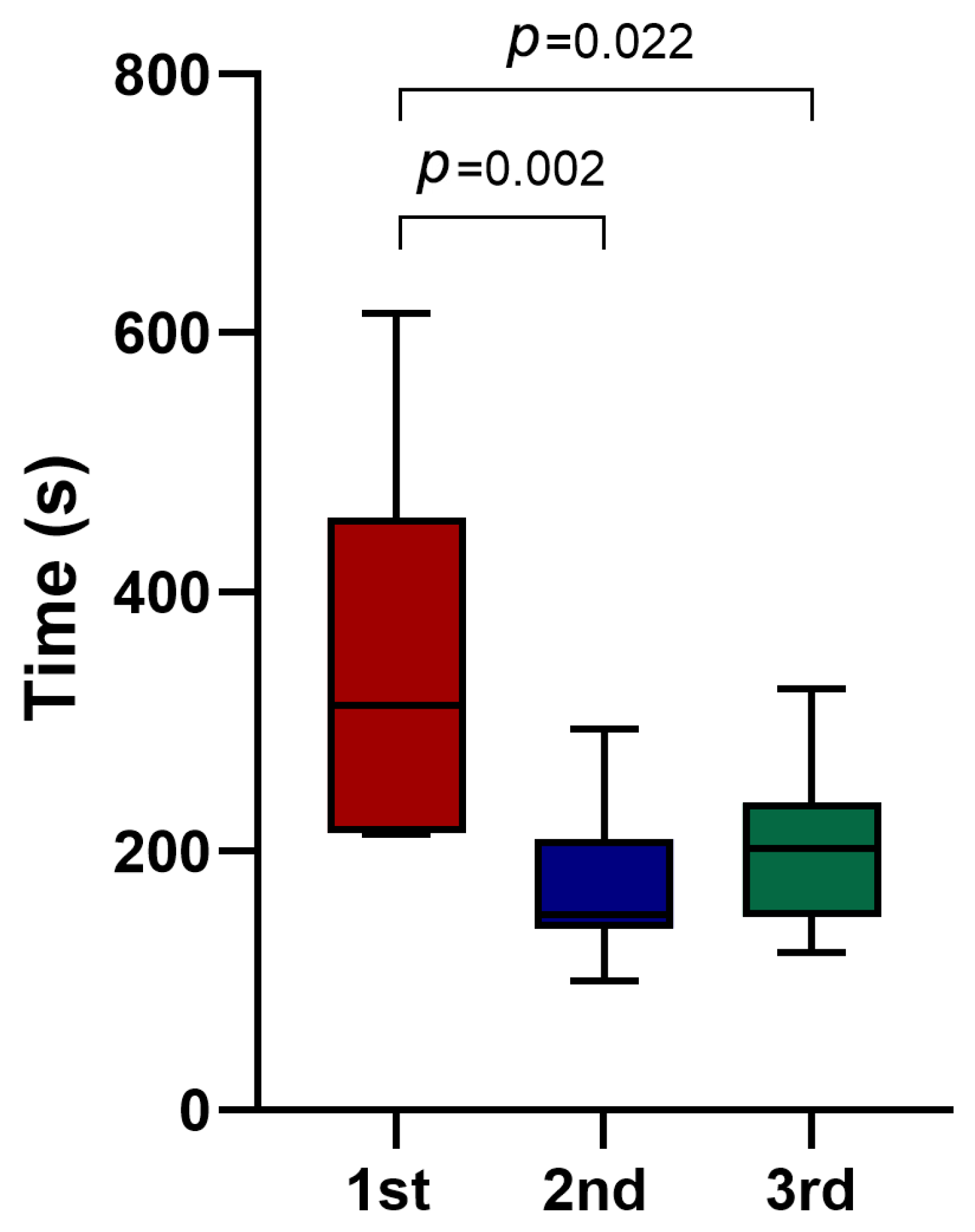 Median time, s | 204 (148–291) | 108.5 (96.25–127) | <0.001 |