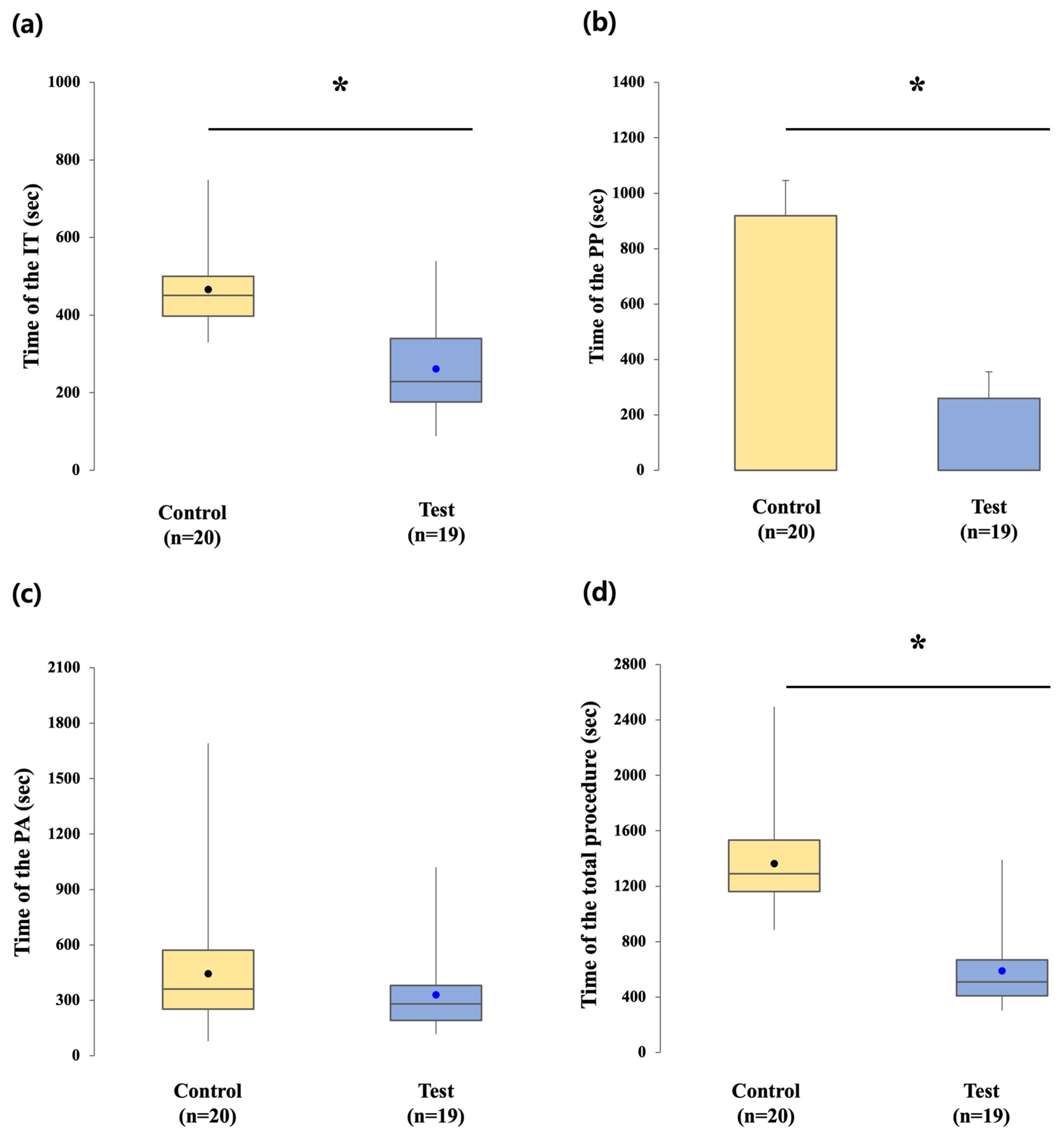 All time measurements were recorded by an independent assistant using a stopwatch to minimize measurement bias. The operational definitions and checkpoints for each group are presented in