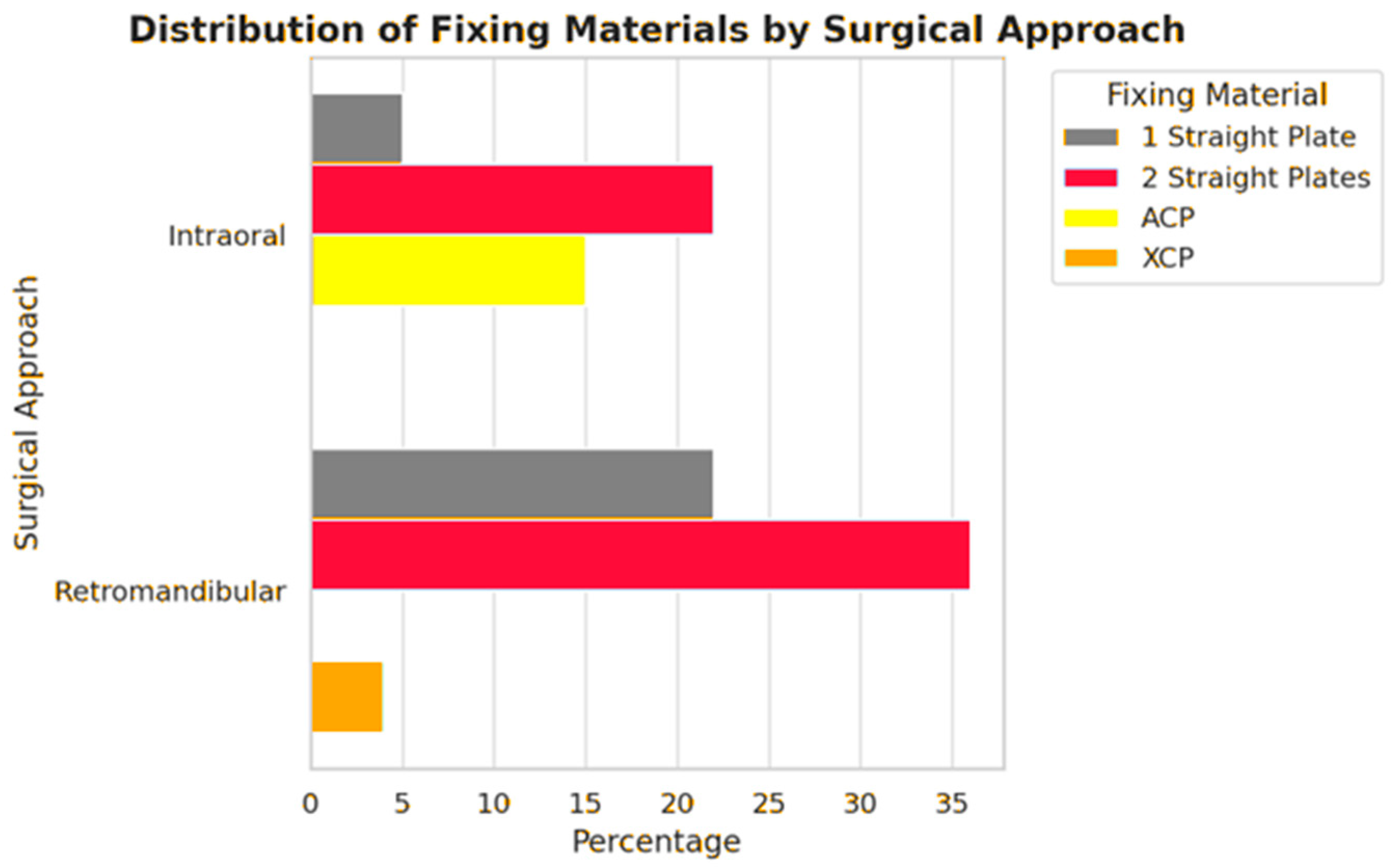 - Al Hasani, K.M.; Bakathir, A.A.; Al-Hashmi, A.K.; Albakri, A.M. Complications of Open Reduction and Internal Fixation of Mandibular Condyle Fractures in Oman. Sultan Qaboos Univ. Med. J. 2024, 24, 338–344. [Google Scholar] [CrossRef] [PubMed]