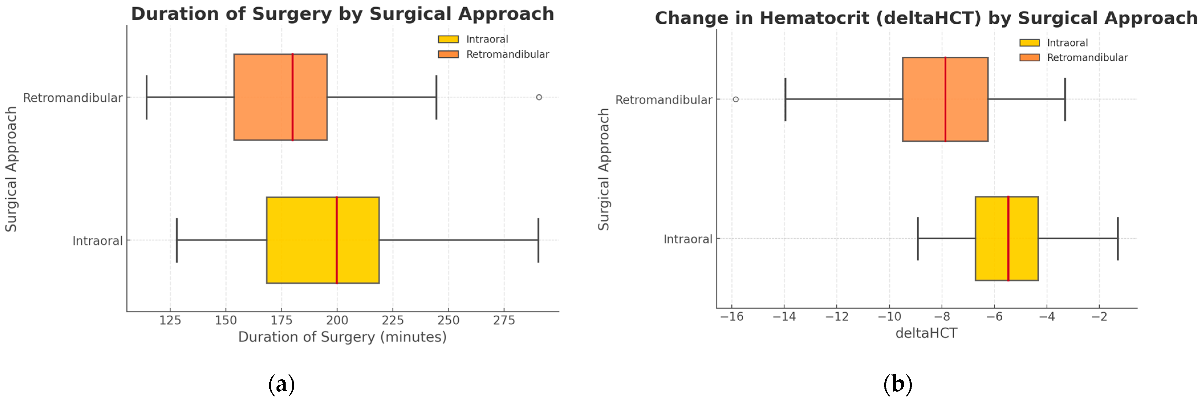 - Luz, J.G.; Rodrigues, L. Changes in Hemoglobin and Hematocrit Levels Following Orthognathic Surgery of the Mandible. Bull. Group Int. Rech. Sci. Stomatol. Odontol. 2004, 46, 36–41. [Google Scholar] [PubMed]