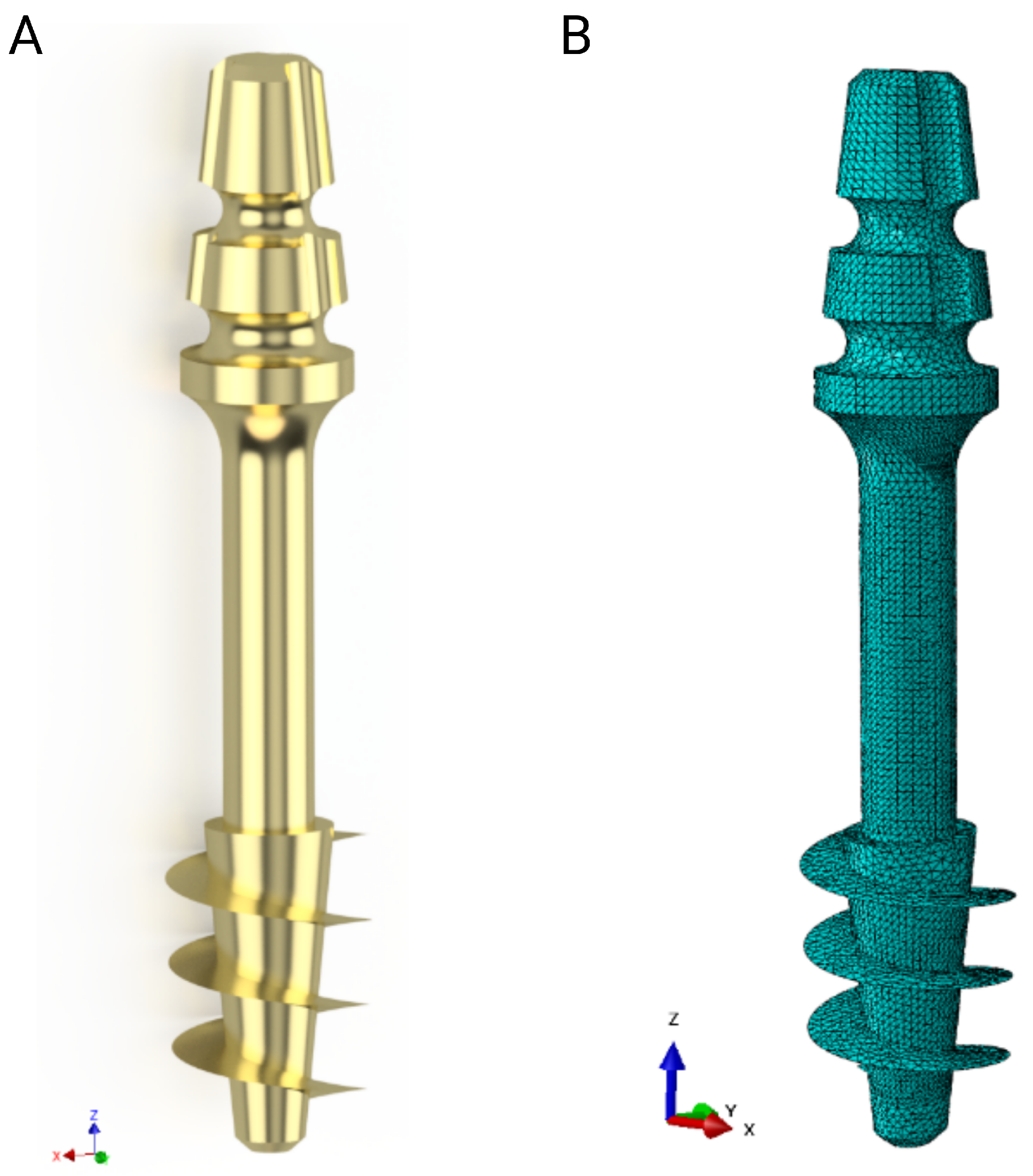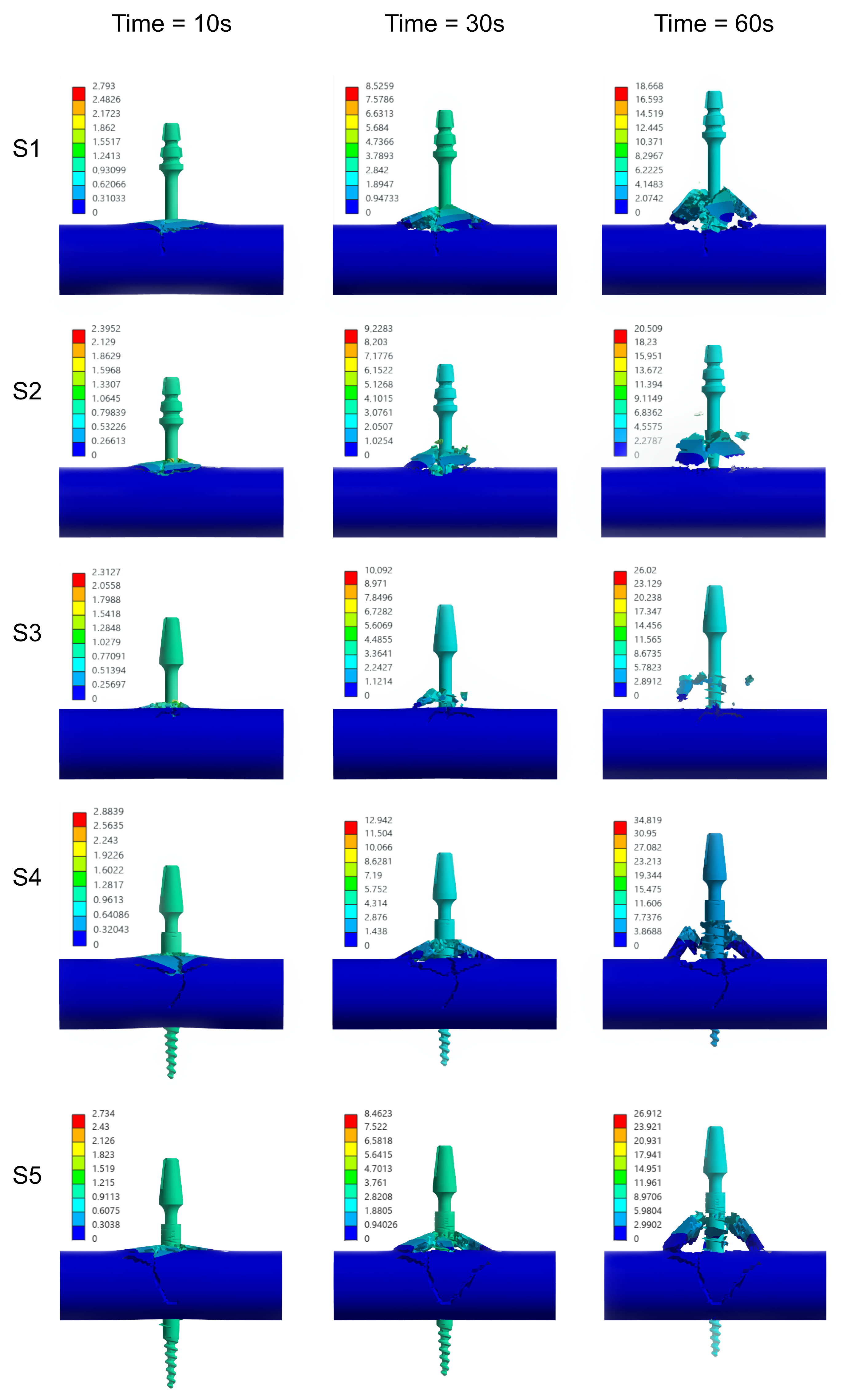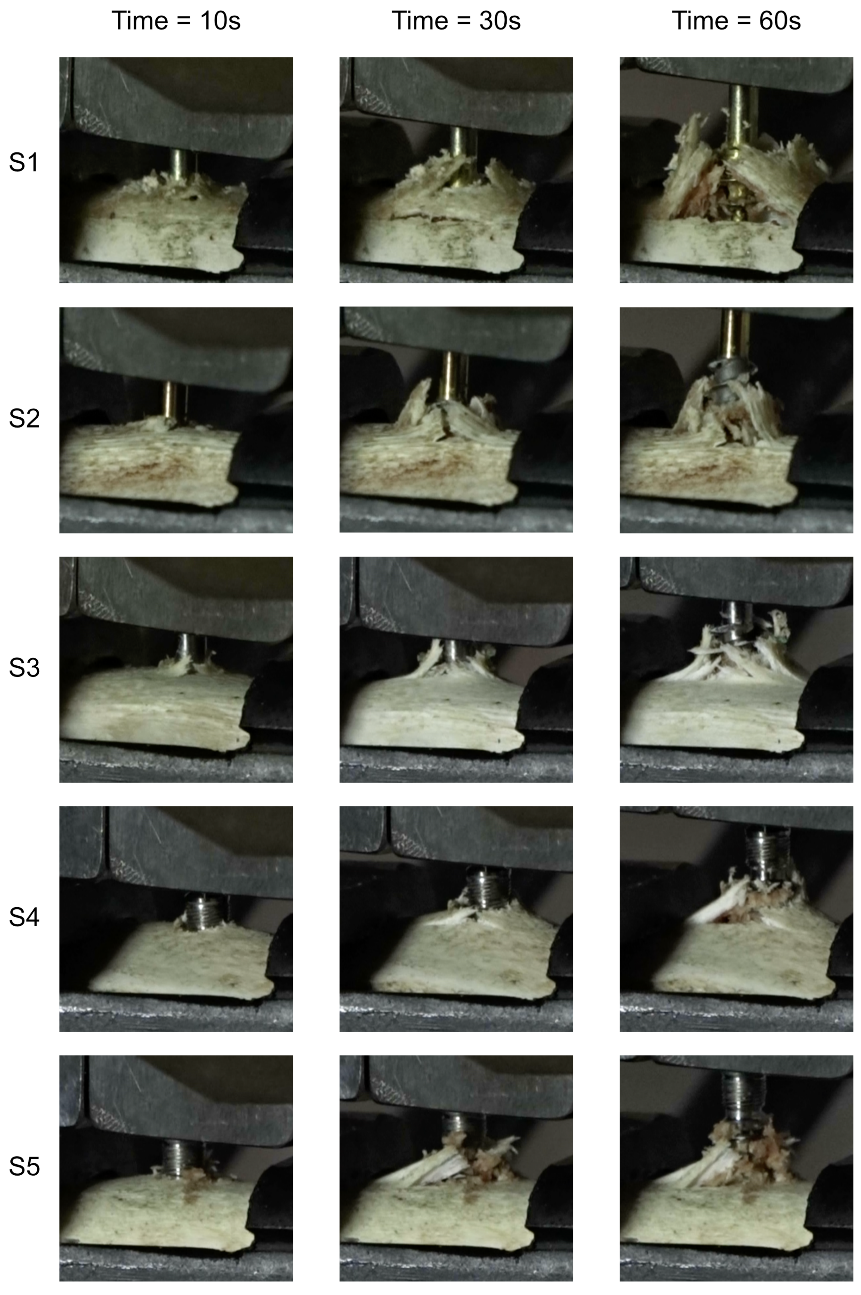 During the pull-out process, the implant threads, bonded with the bone material, created localized stress concentrations at the interface. As the applied force increased, these stresses exceeded the shear strength of the bone-like blocks, leading to a progressive failure that manifested itself as the cylindrical shearing plane.