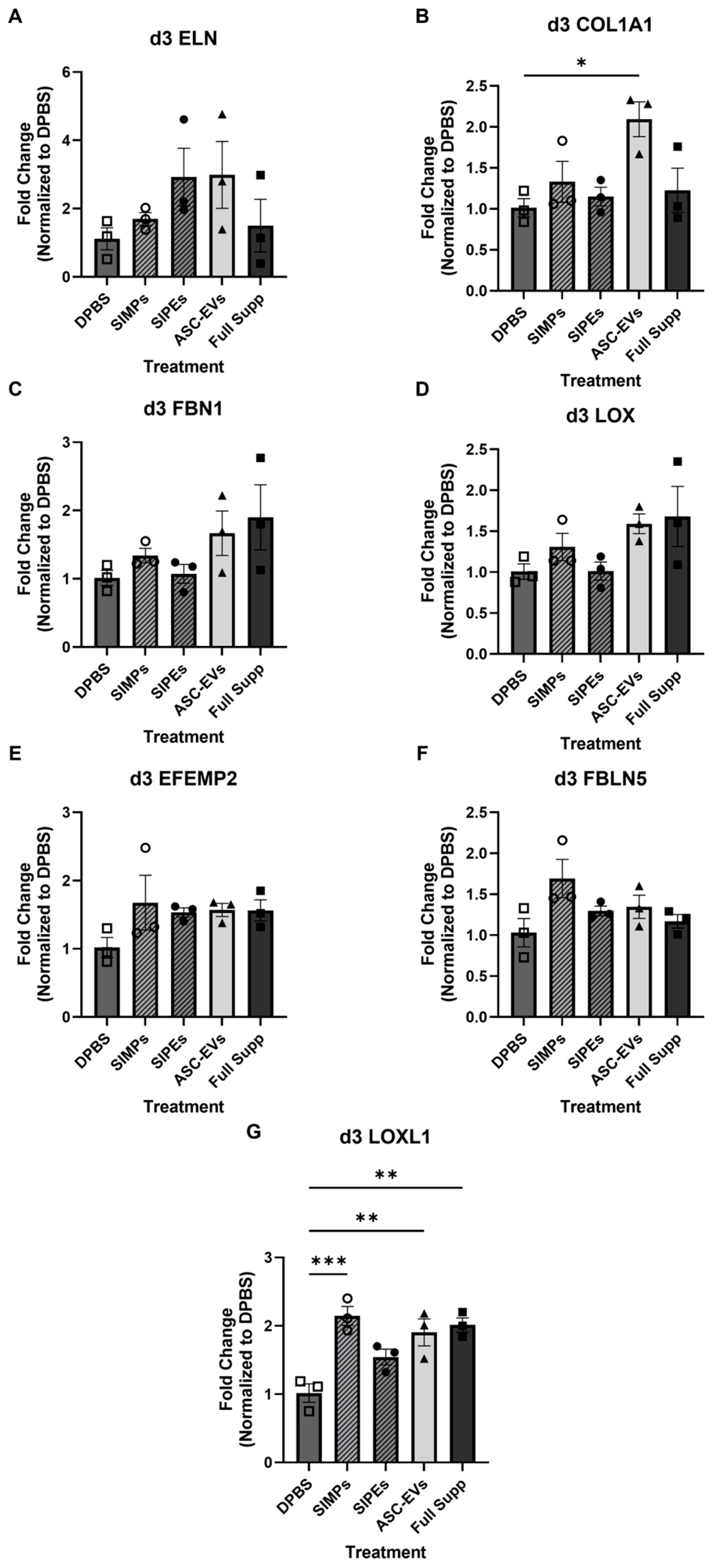 - Cunnane, E.M.; Ramaswamy, A.K.; Lorentz, K.L.; Vorp, D.A.; Weinbaum, J.S. Extracellular Vesicles Derived from Primary Adipose Stromal Cells Induce Elastin and Collagen Deposition by Smooth Muscle Cells within 3D Fibrin Gel Culture. Bioengineering 2021, 8, 51. [Google Scholar] [CrossRef] [PubMed]