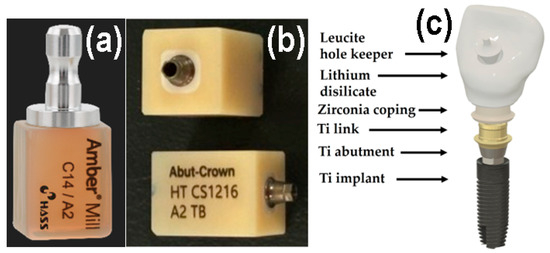 - Protopapadaki, M.; Monaco, E.Z.; Kim, H.; Davis, E.L. Comparison of fracture resistance of pressable metal ceramic custom implant abutments with CAD/CAM commercially fabricated zirconia implant abutments. J. Prosthet. Dent. 2009, 101, 226–230. [Google Scholar] [CrossRef] [PubMed]