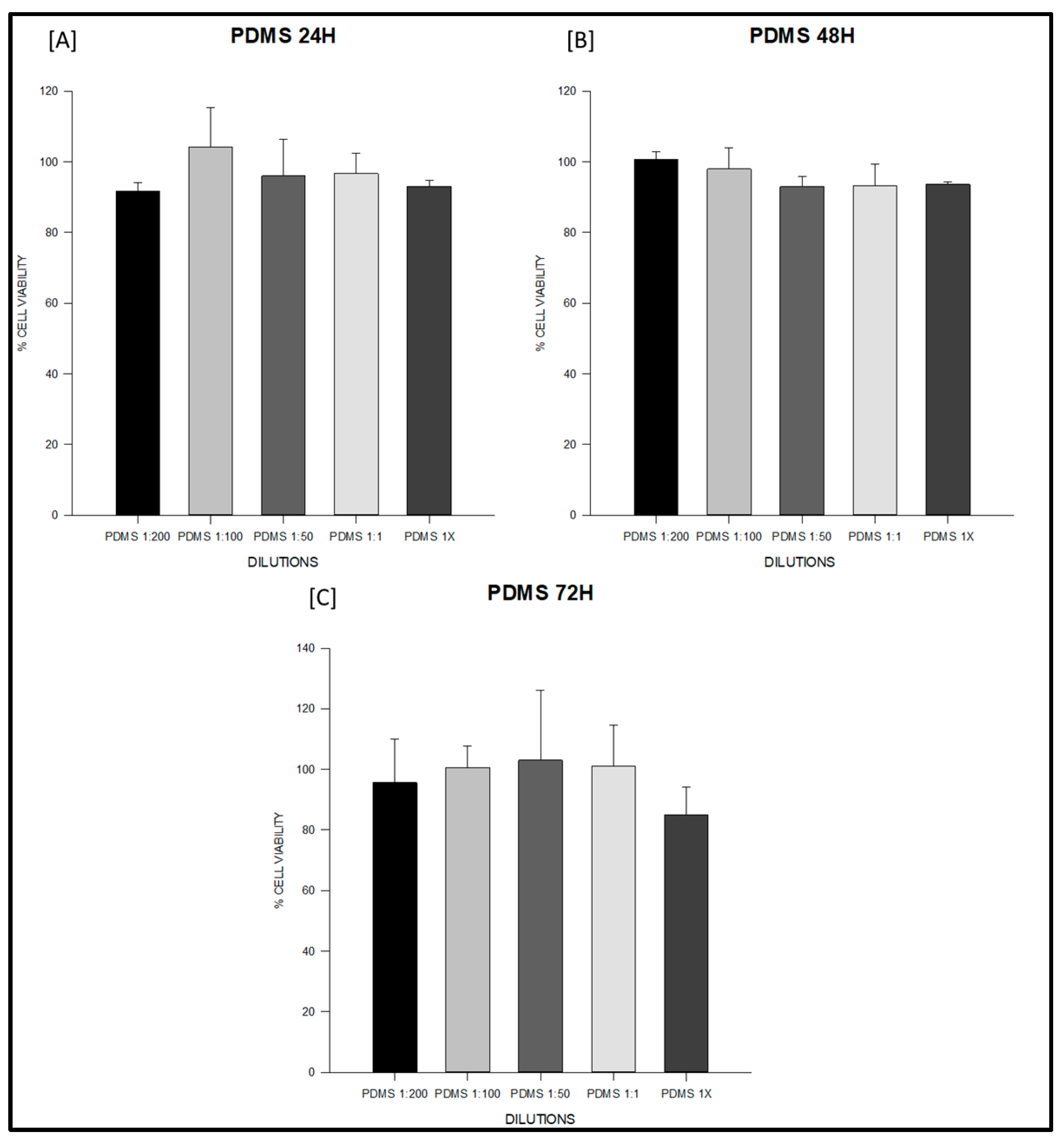 | PDMS | 24 h | 3 | 91.64 ± 2.43 | 104.05 ± 11.28 | 95.94 ± 10.30 | 96.64 ± 5.62 | 92.97 ± 1.82 |