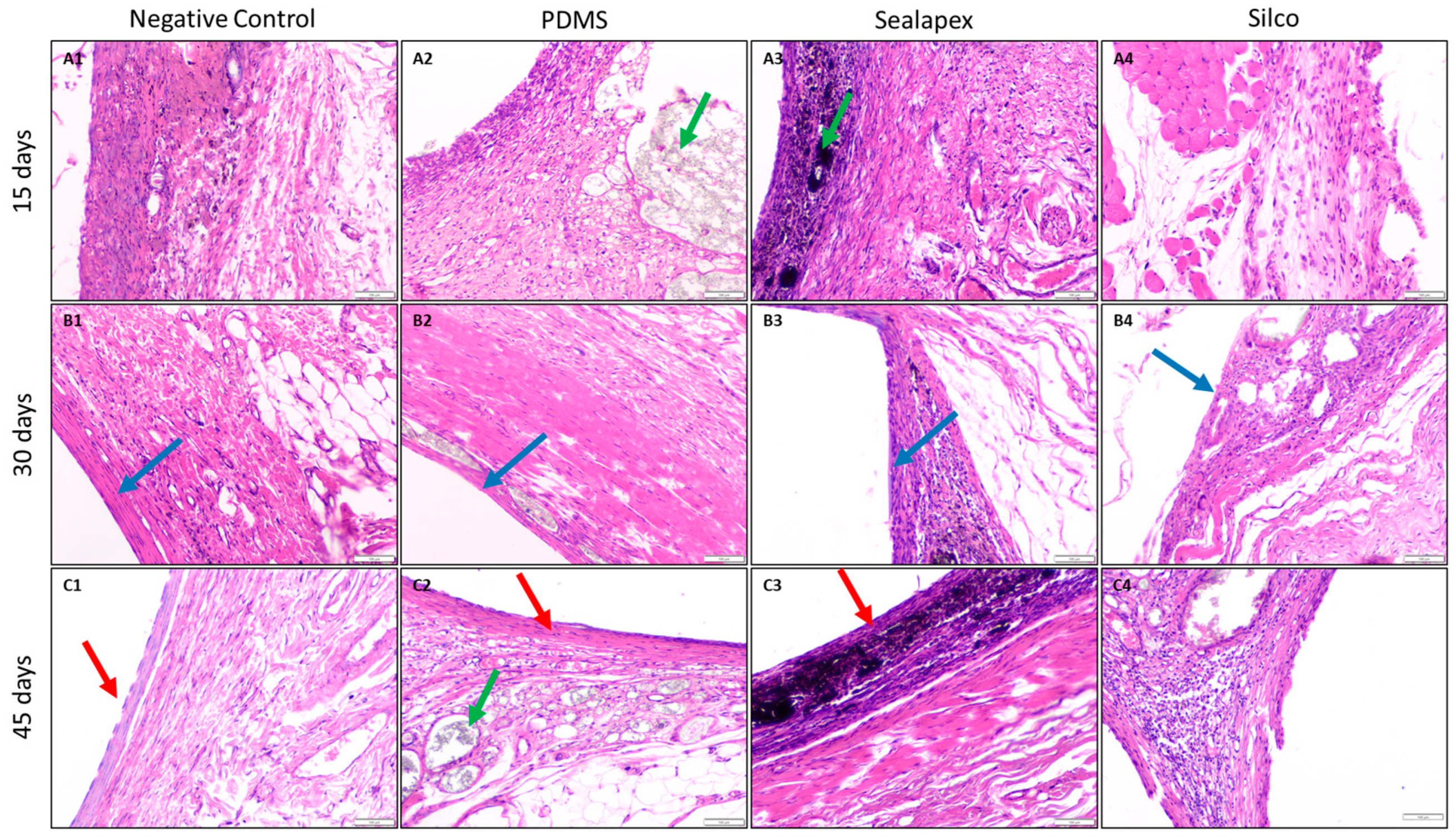 | III. Extent | No detected inflammatory cells | Inflammatory cells just at the superficial layer of the capsule | Cells limited to the fibrous capsule | Cells beyond the fibrous capsule | No capsulation/cells are limited to interface | |