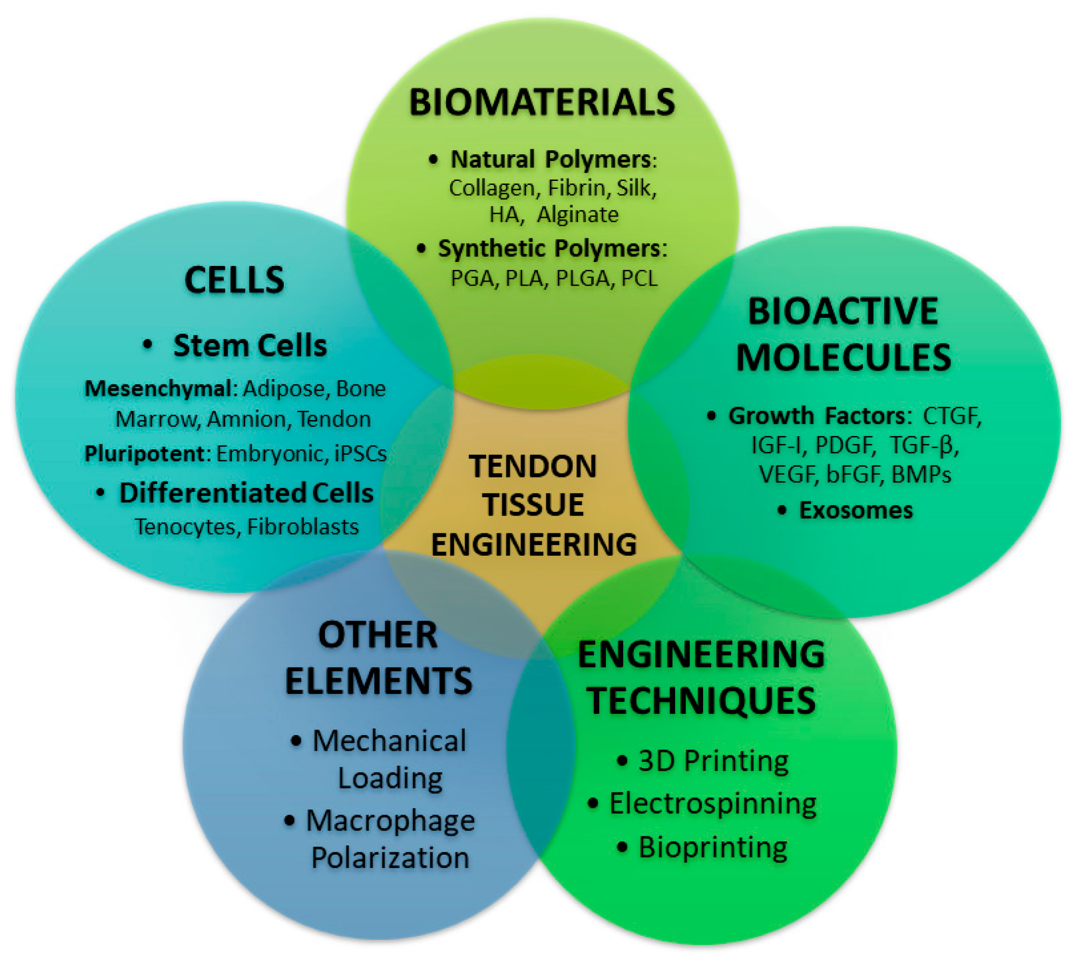 - Ning, C.; Li, P.; Gao, C.; Fu, L.; Liao, Z.; Tian, G.; Yin, H.; Li, M.; Sui, X.; Yuan, Z.; et al. Recent Advances in Tendon Tissue Engineering Strategy. Front. Bioeng. Biotechnol. 2023, 11, 1115312. [Google Scholar] [CrossRef]