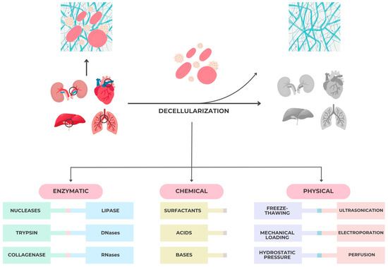 - Gilpin, A.; Yang, Y. Decellularization Strategies for Regenerative Medicine: From Processing Techniques to Applications. BioMed Res. Int. 2017, 2017, 9831534. [Google Scholar] [CrossRef]
