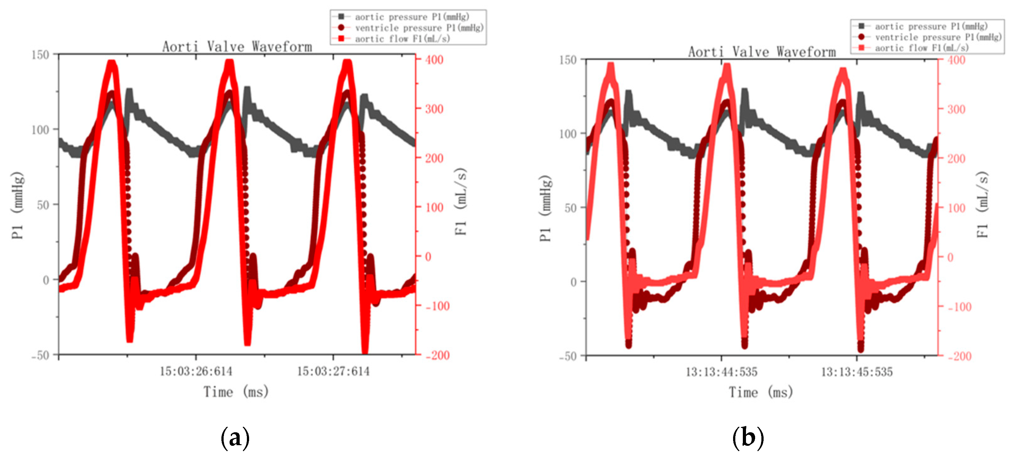 Figure 7′s pressure–flow curves across both control and treatment groups confirms that this represents a systematic experimental limitation rather than material-specific performance degradation. After excluding the effect of paravalvular leakage, the actual regurgitation difference between the two groups was less than 3% (