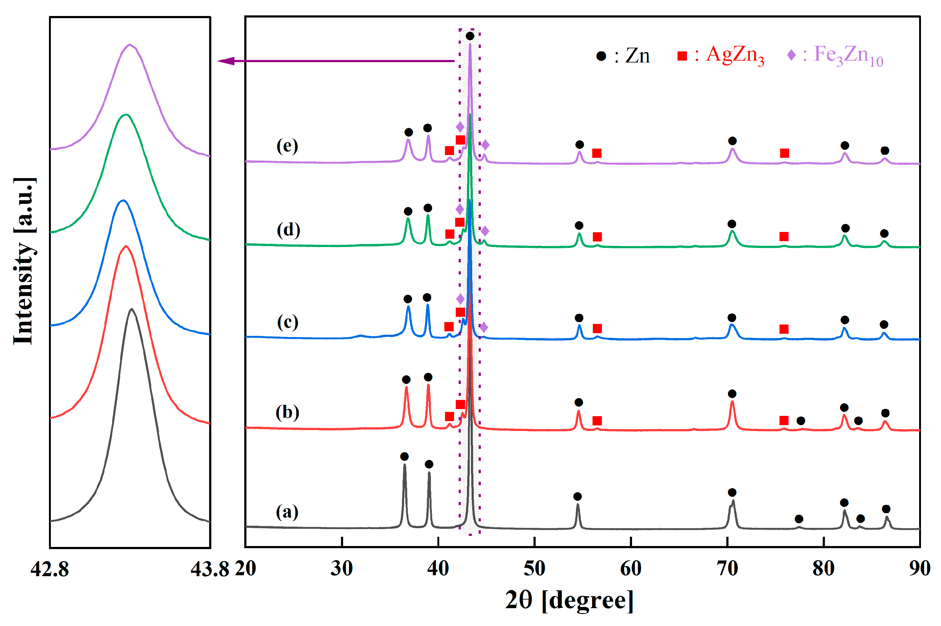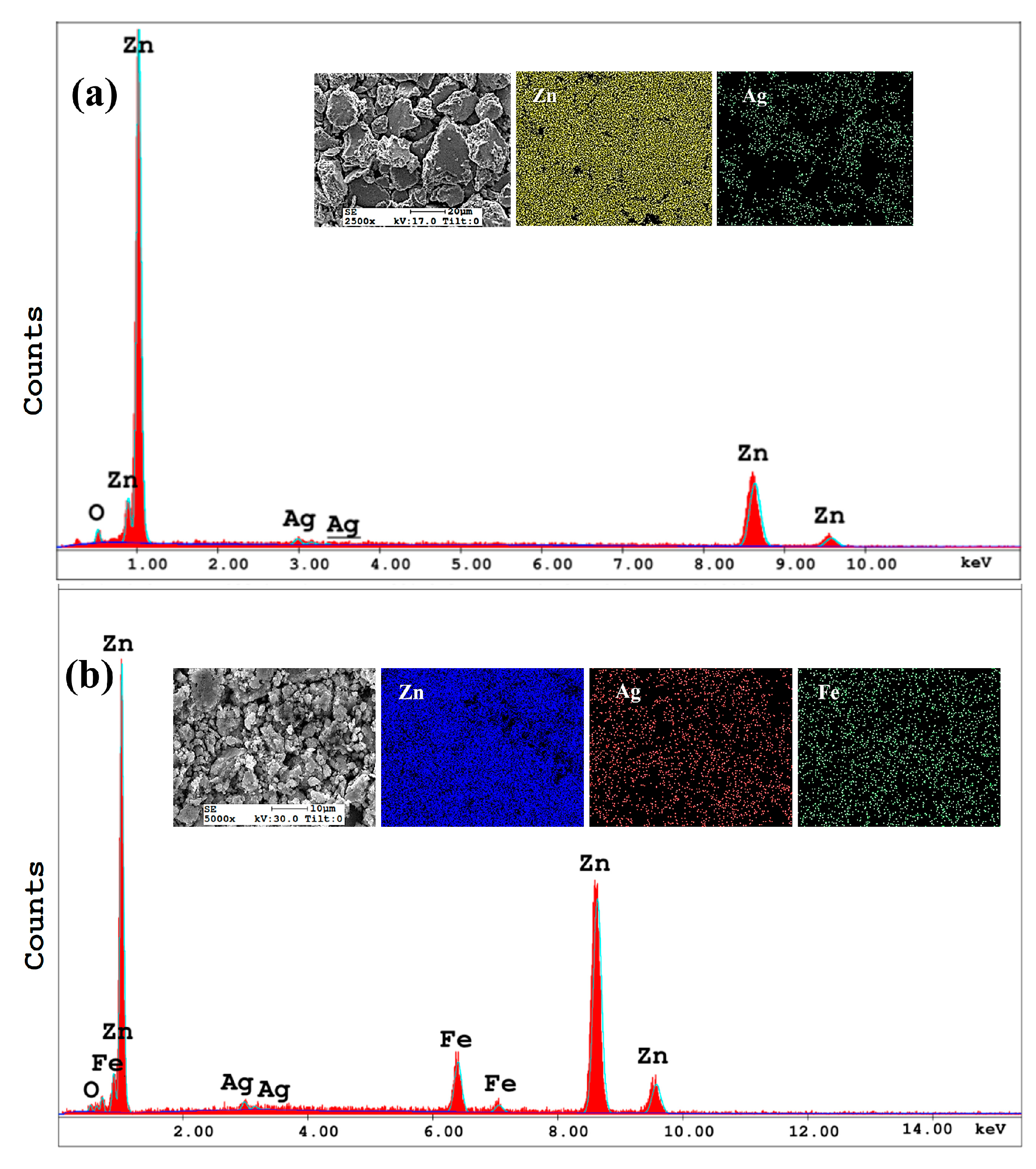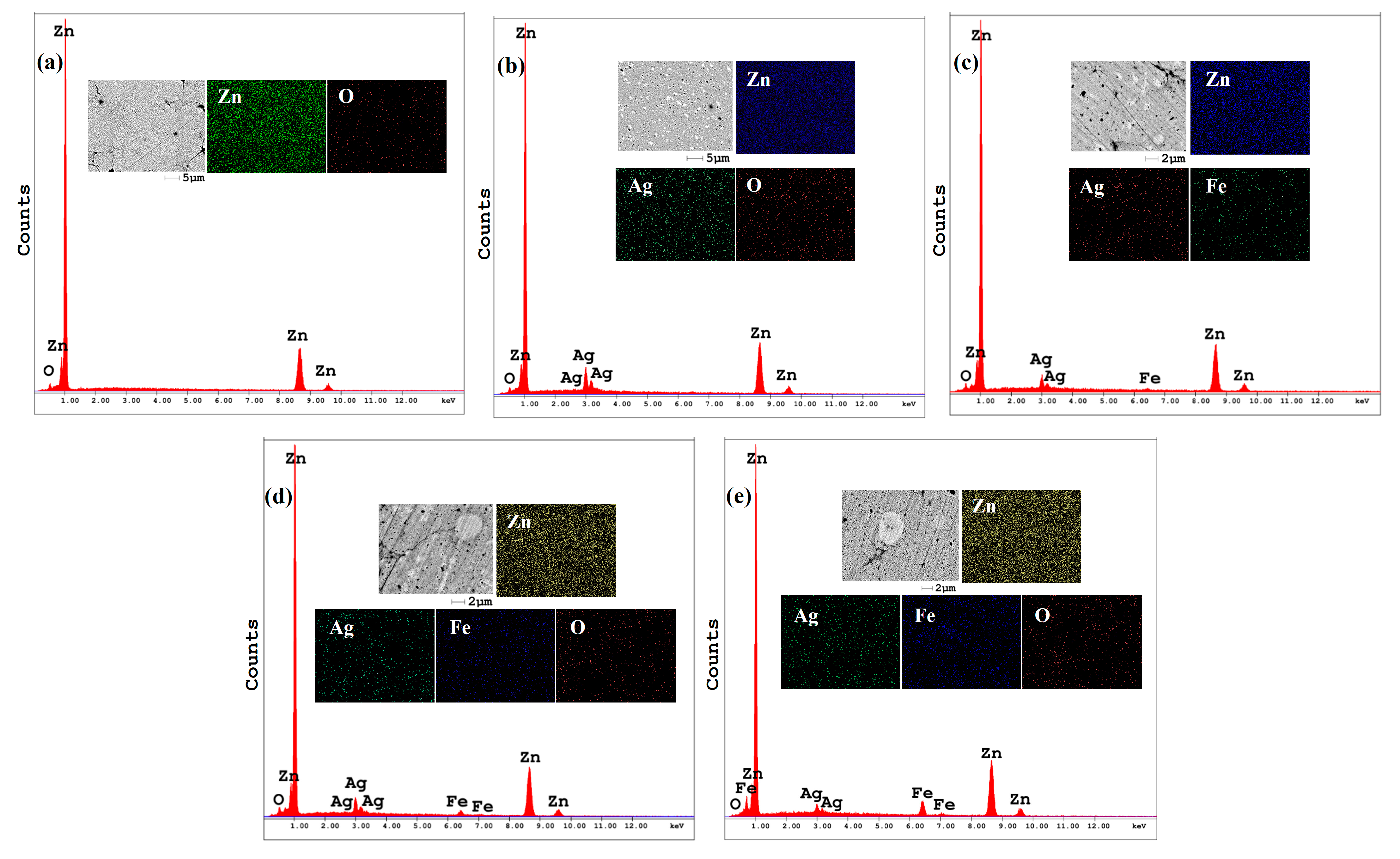 - Zn-Ag-Fe alloys produced through mechanical alloying exhibited intermetallic phases of AgZn3 and Fe3Zn10, as verified by XRD analysis. SEM/EDX examination indicated that the dimensions and proportion of the intermetallic phase expanded with the increase in alloying content.