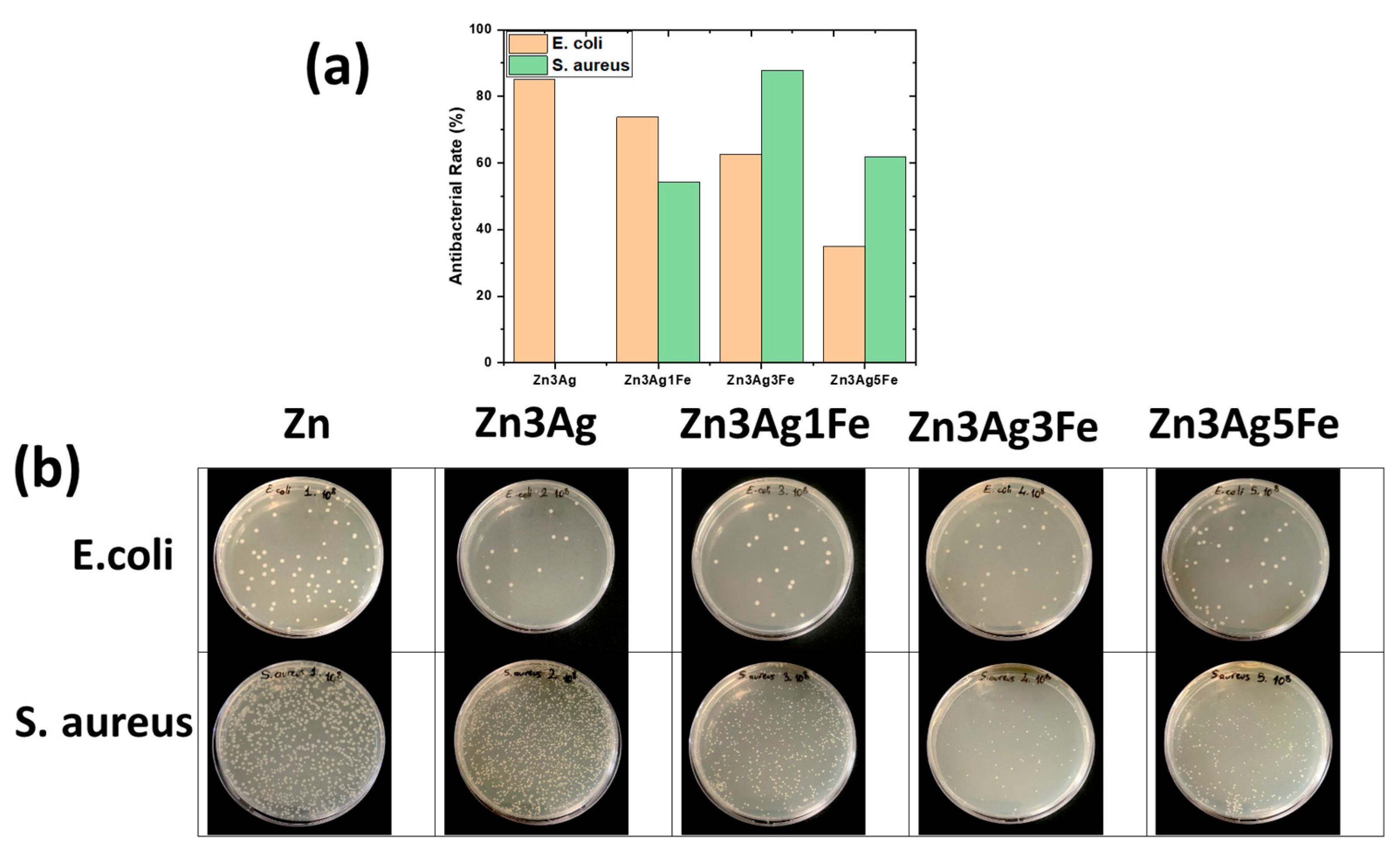 - The addition of Ag enhanced its efficacy against E. coli, but not against S. aureus. Increased Fe enhanced the antibacterial action against S. aureus by facilitating more degradation.