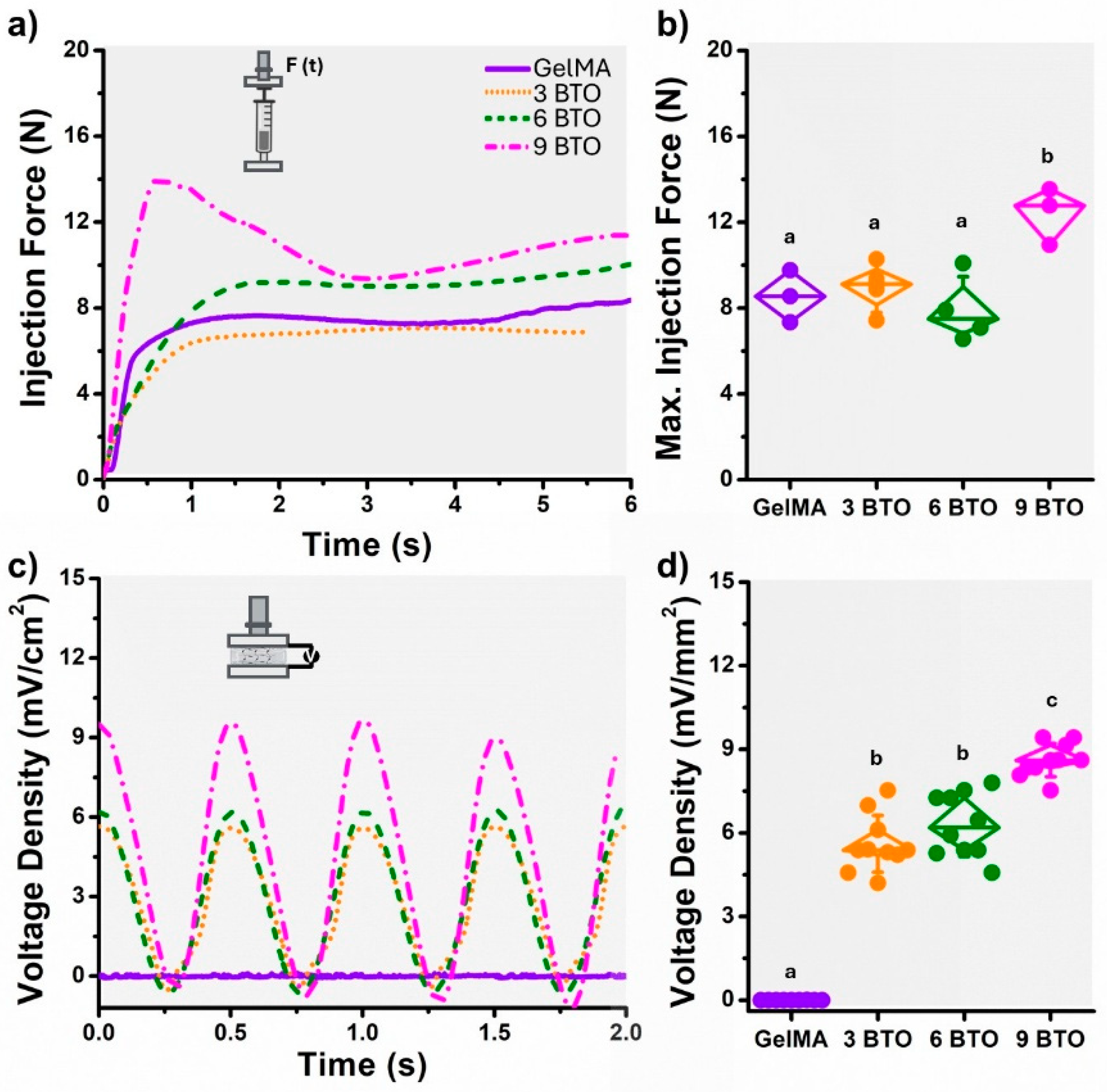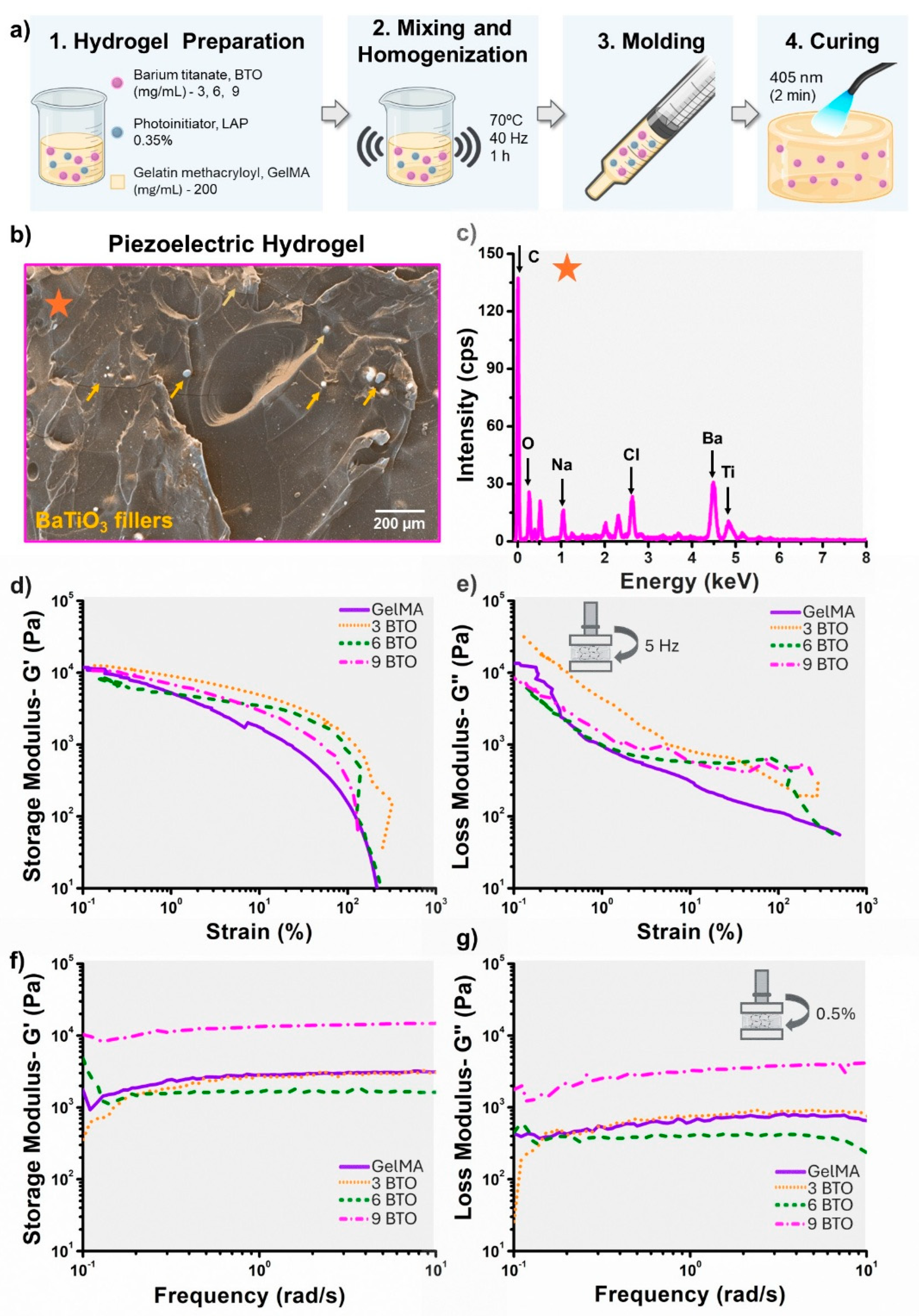 3.2. Injectability and Electromechanical Characterization of Piezoelectric Hydrogels