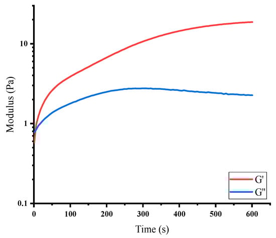 Mechanical properties, a key feature in evaluating BSA gels, were tested using a compression program with a universal texture analyzer equipped with a 250 N force sensor (TMS-Pro, Food Technology Corporation, Sterling, VA, USA). Cylindrical, swollen hydrogel samples (Φ 8.5 mm × 6 mm) were prepared for testing. The starting force was set to 0.05 N, the compression rate was 20 mm/min, and the probe lift height was 10 mm. The samples were compressed to a strain of 80%, and stress–strain curves were recorded for all BSA hydrogel samples.
