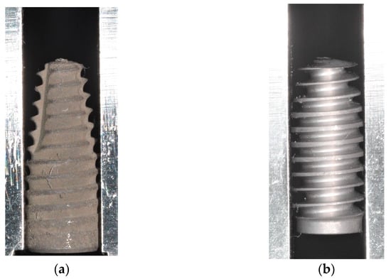- Abuhussein, H.; Pagni, G.; Rebaudi, A.; Wang, H.L. The effect of thread pattern upon implant osseointegration. Clin. Oral Implant. Res. 2010, 21, 129–136. [Google Scholar] [CrossRef]