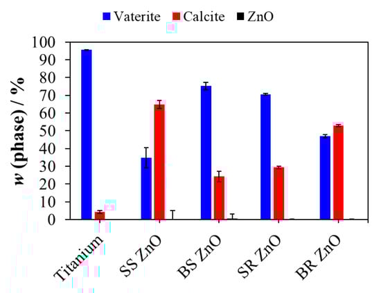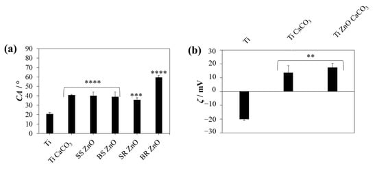 3.2. ZnO/CaCO3 Composite on Titanium Surface