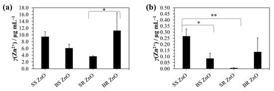 - Pasquet, J.; Chevalier, Y.; Couval, E.; Bouvier, D.; Noizet, G.; Morlière, C.; Bolzinger, M.A. Antimicrobial Activity of Zinc Oxide Particles on Five Micro-Organisms of the Challenge Tests Related to Their Physicochemical Properties. Int. J. Pharm. 2014, 460, 92–100. [Google Scholar] [CrossRef]