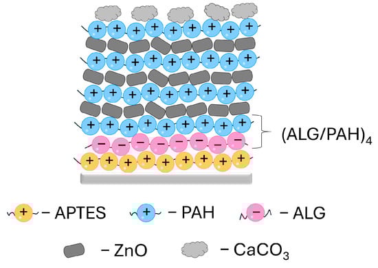 - Matijaković Mlinarić, N.; Altenried, S.; Selmani, A.; Nikolić, J.; Učakar, A.; Zore, A.; Abram, A.; Lehner, S.; Škapin, A.S.; Kušter, M.; et al. Biocompatible Polyelectrolyte Multilayers with Copper Oxide and Zinc Oxide Nanoparticles for Inhibiting Bacterial Growth. ACS Appl. Nano Mater. 2024, 7, 12550–12563. [Google Scholar] [CrossRef]