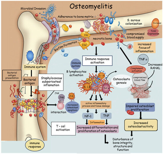- Beck-Broichsitter, B.E.; Smeets, R.; Heiland, M. Current Concepts in Pathogenesis of Acute and Chronic Osteomyelitis. Curr. Opin. Infect. Dis. 2015, 28, 240–245. [Google Scholar] [CrossRef]
