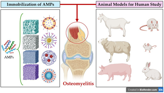 - Meroni, G.; Tsikopoulos, A.; Tsikopoulos, K.; Allemanno, F.; Martino, P.A.; Soares Filipe, J.F. A Journey into Animal Models of Human Osteomyelitis: A Review. Microorganisms 2022, 10, 1135. [Google Scholar] [CrossRef] [PubMed]