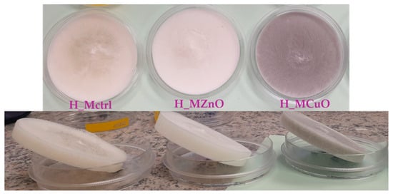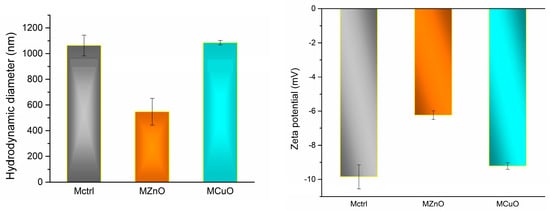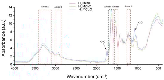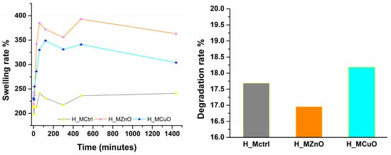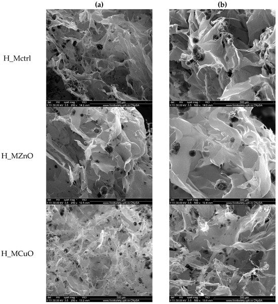 3.2. Characterization of Hydrogel-Type Samples: H_Mctrl, H_MZnO, H_MCuO
