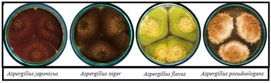 - Atallah, O.O.; Mazrou, Y.S.A.; Atia, M.M.; Nehela, Y.; Abdelrhim, A.S.; Nader, M.M. Polyphasic characterization of four Aspergillus species as potential biocontrol agents for white mold disease of bean. J. Fungi 2022, 8, 626. [Google Scholar] [CrossRef] [PubMed]