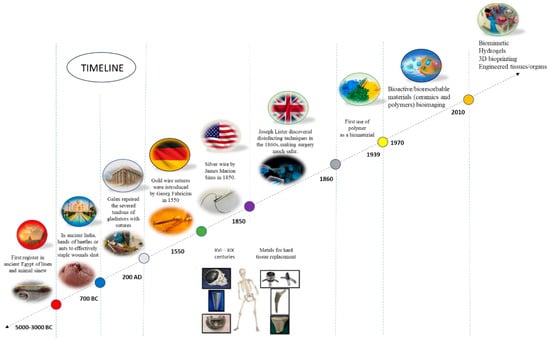 Schematic representation of the timeline indicating some of the main biomaterials data and the respective discoveries. Reprinted from ref. [].