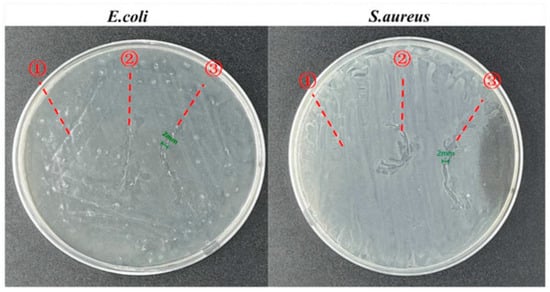 Zone of inhibitions for the in vitro antimicrobial activities of ① pure, ② HPC/PVP-coated, and ③ HPC/PVP-0.08% surgical sutures. Reprinted from ref. [].