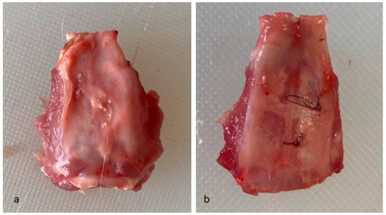 - Falacho, R.I.; Palma, P.J.; Marques, J.A.; Figueiredo, M.H.; Caramelo, F.; Dias, I.; Viegas, C.; Guerra, F. Collagenated Porcine Heterologous Bone Grafts: Histomorphometric Evaluation of Bone Formation Using Different Physical Forms in a Rabbit Cancellous Bone Model. Molecules 2021, 26, 1339. [Google Scholar] [CrossRef] [PubMed]