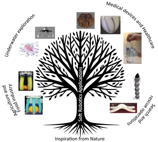 - Tauber, F.; Desmulliez, M.; Piccin, O.; Stokes, A.A. Perspective for soft robotics: The field’s past and future. Bioinspiration Biomim. 2023, 18, 035001. [Google Scholar] [CrossRef]