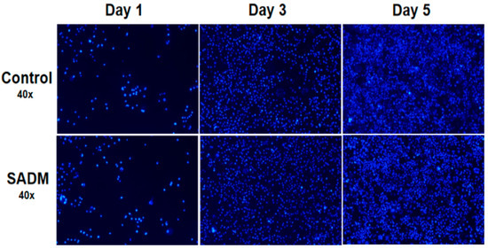 SADM extract to culture MSCs cells on the first, third and fifth day of DAPI staining.