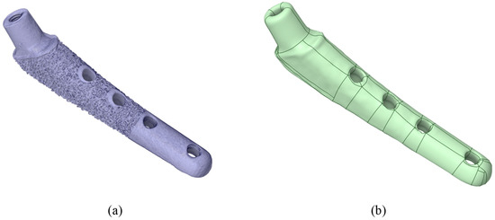 Then, in the Ansys SpaceClaim (v. 2023 R1) software, the stl surfaces were converted to a vector 3D format, such as stp (Figure 4b).