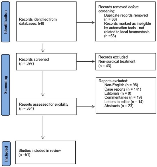Following an initial screening of 548 publications, 51 studies were identified as highly relevant to local aemostasis in oral surgery. Priority was given to studies evaluating the effectiveness, safety, and clinical applications of local hemostatic agents.